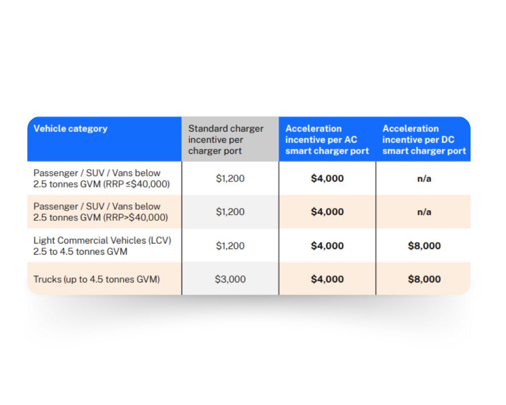 - This grant covers both purchases of EV’s and 1 x smart charger per BEV purchased